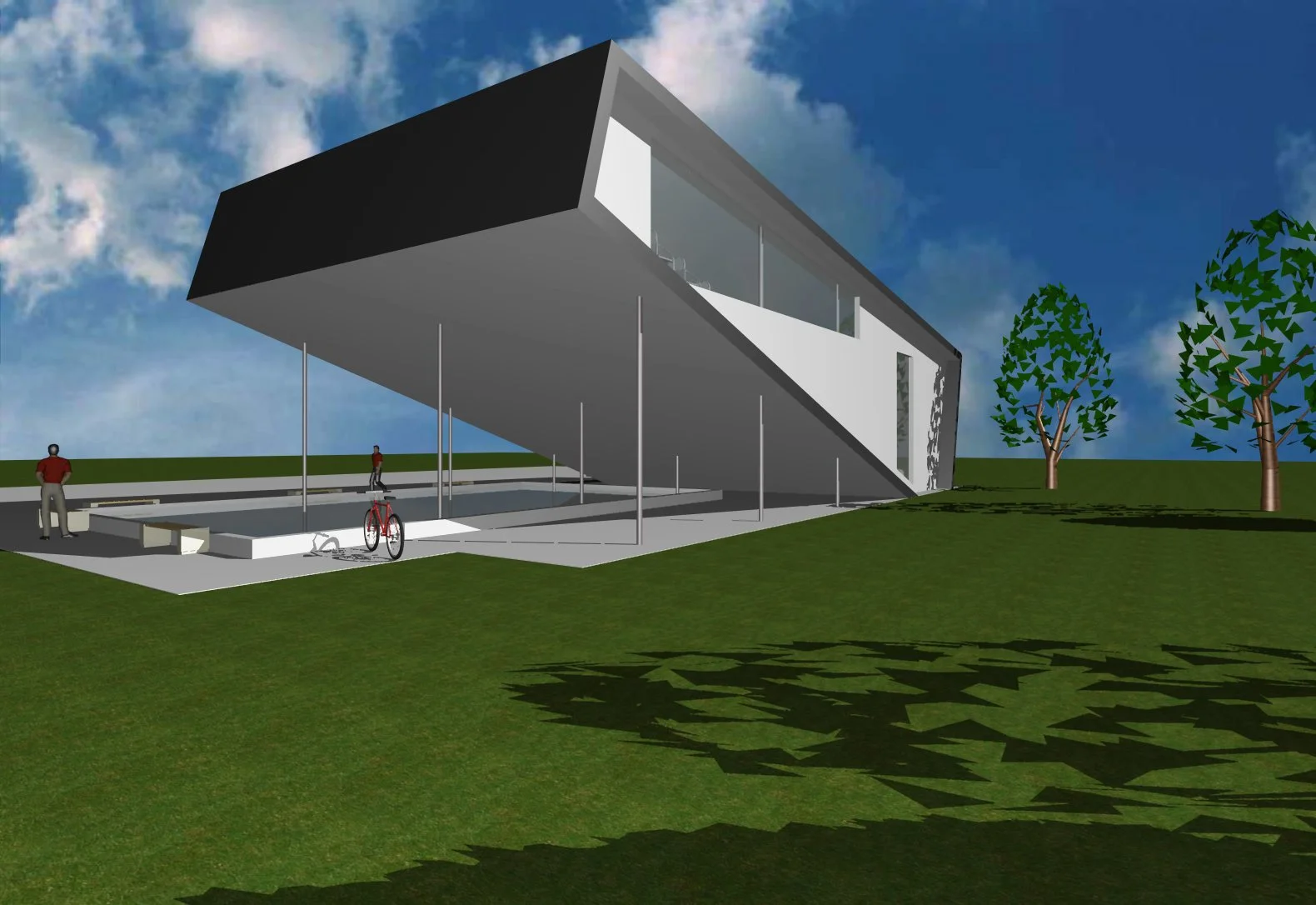 Forslag på ny gymsal. Dessverre måtte prosjektet nedskaleres pga økonomi. Men justert utgave ble realisert 2025.